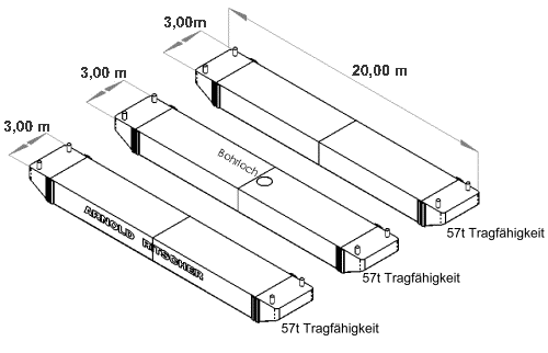 57-300 t Tragfähigkeit (57 t pro Ponton) - Seitenhöhe: 1,60m